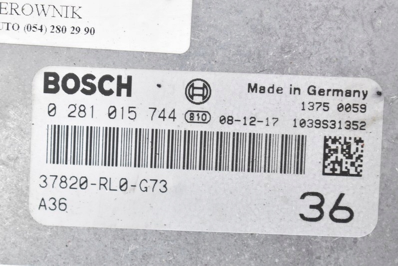 Additional information: BOSCH. 0281015744. VIII 2.2 I-DTEC KOMBI-quality A && HONDA ACCORD CONTROLLER 37820-RL0-G73