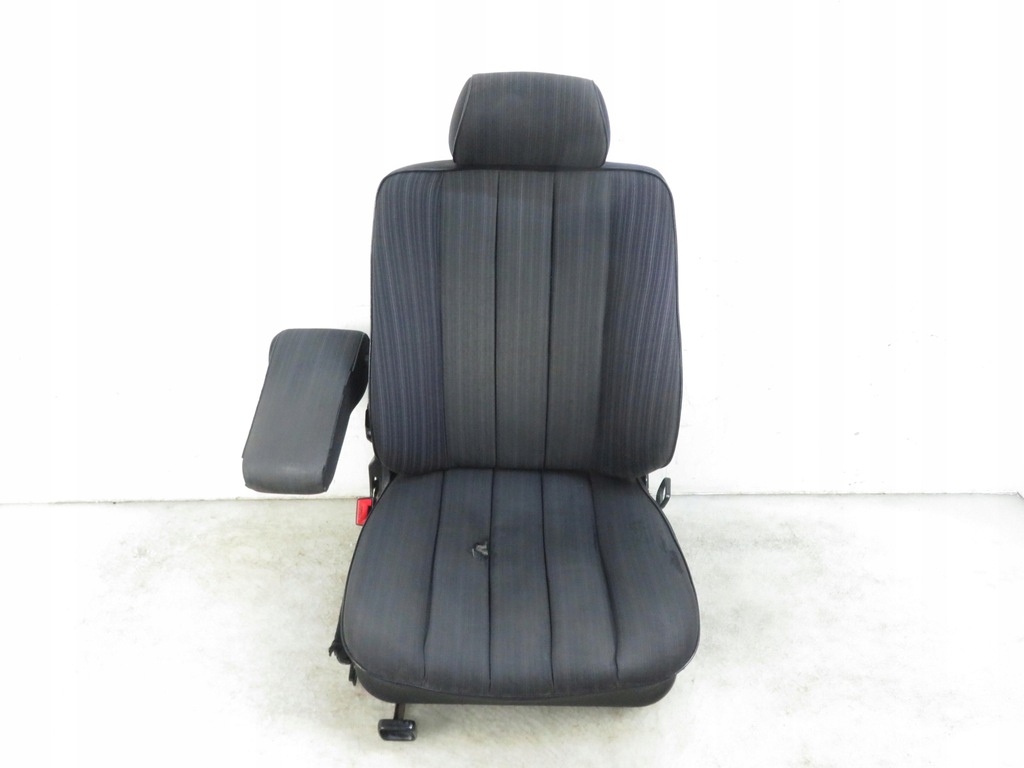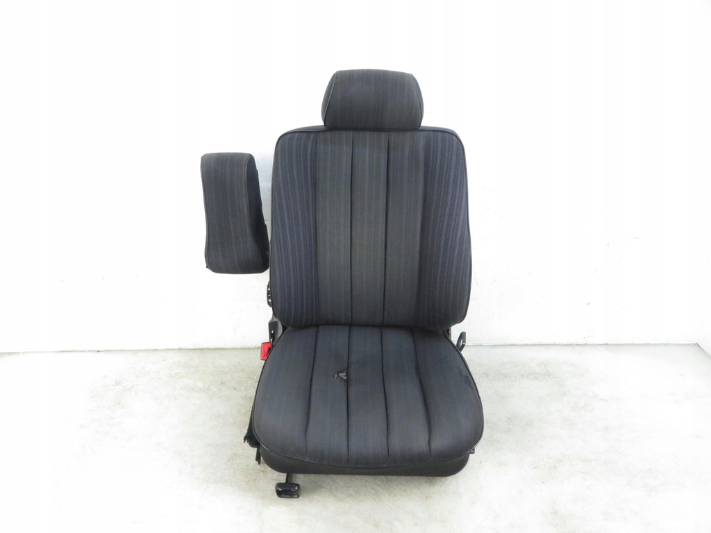 SEAT UPHOLSTERED WITH GRAY MATERIAL, MANUALLY ADJUSTABLE, WITH SEAT BELTS CLOSURE, WITH A LIFTING ARMREST, SEAT UPHOLSTERY WORN AND TEARED.
