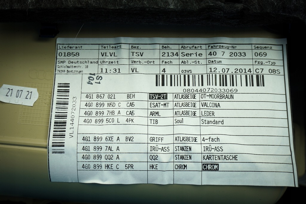| Part manufacturer | Audi OE |