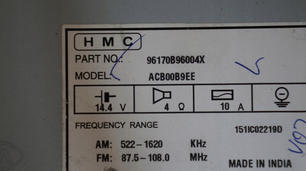 FACTORY NO: ACB00B9EE / 96170B96004X