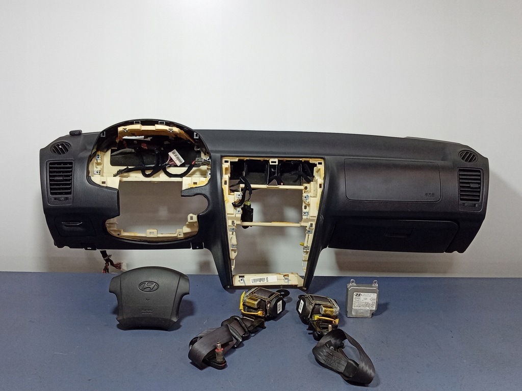 Description: Black Leather dashboard, passenger compartment included, with Passenger Airbag, driver airbags, front seat belts, driver airbags 95910-H1200 visible signs of use, scratches, deformations, abrasions-quality B & amp; HYUNDAI Terracan Board cab Belts EU