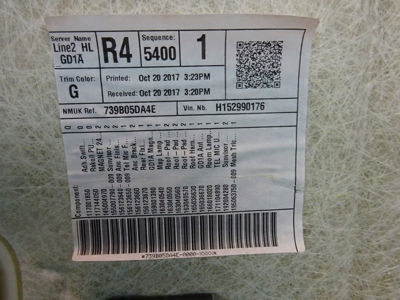 PART: HEADLINING BRAND: INFINITIMODEL: Q30MODEL: ENGINE CAPACITY: 2.0YEAR: 2018BODY: SuvMANN: ENGINE CODE: ENGINE POWER: 211PAINT CODE: Z11G
