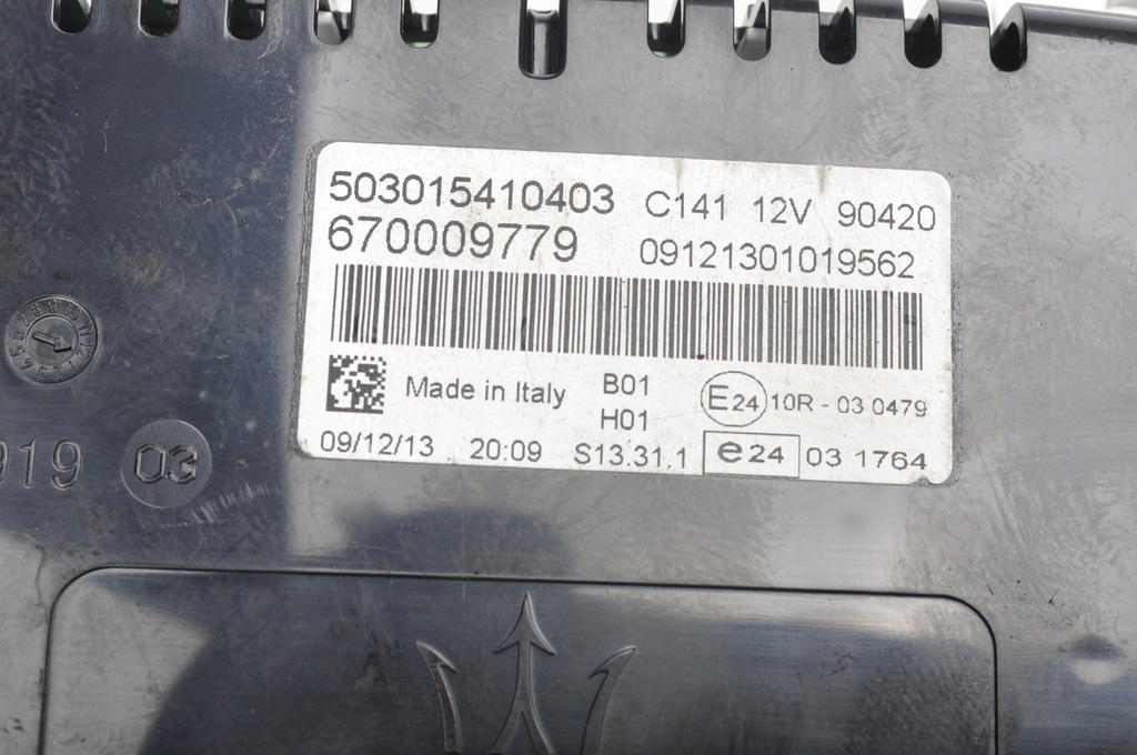 NAME COUNTER CLOCKS SERIAL NUMBER 670009779 BRAND MASERATI MODEL GHIBLI III (M157) ENGINE 3.0 D 275HP BODYWORK Sedan NUMBER OF DOORS 4 SUB-MODEL ENGINE CAPACITY 3.0 TYPE OF CHASSIS TYPE OF FUEL TYPE: ENGINE CODE 2014 YEAR OF PRODUCTION CODE: 2014 YEAR CODE.