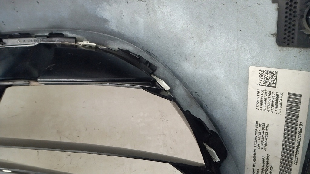 The bumper is in very good condition, undamaged, unrepaired, uncracked, undamaged, all handles and fastenings are intact, in one place on the lower right side there is a small abrasion and a scratch, the right grille has a small crack and a small defect on the inside, visible in the photos, dummy in perfect condition. the right and left air deflectors are intact, the right and left wheel arch mountings are intact, the original paint has scratches and scuffs.