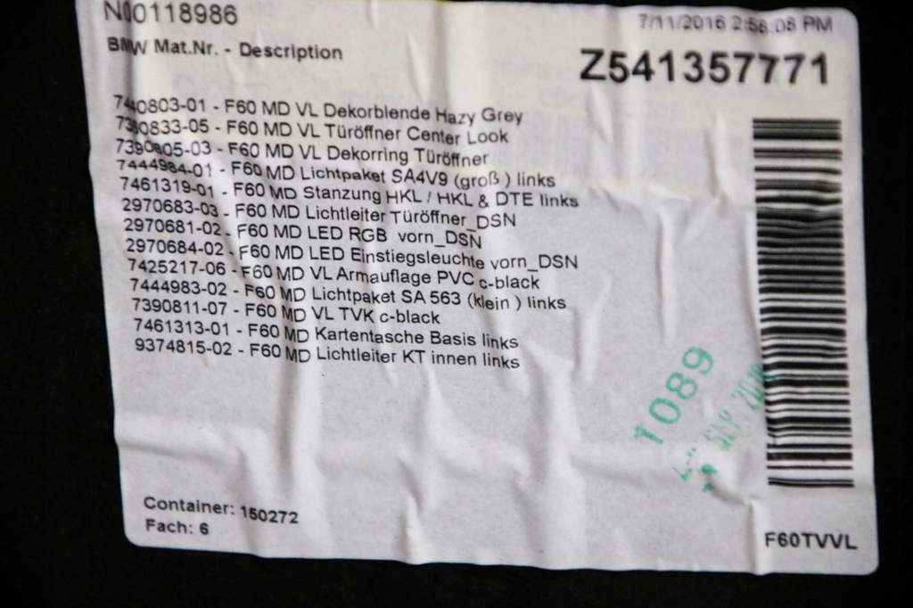 | Quality of parts (according to GVO) | O - original with the logo of the vehicle manufacturer (OE) |