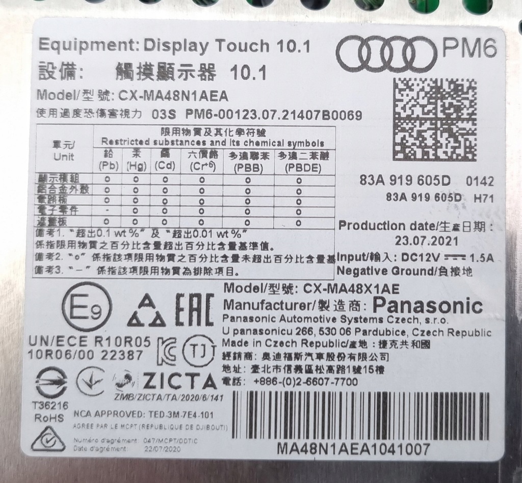 | Part manufacturer | Audi OE |