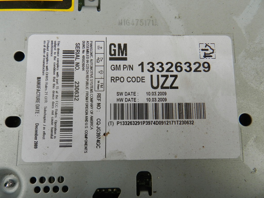 | Part number | GM 13326329 UZZ CD400 CD 400 |
