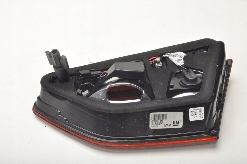 NAME LAMP REAR LEFT LEFT REAR IN THE LID FACTORY NO. 39148316 BRAND OPEL MODEL INSIGNIA II B ENGINE 1.5 16V 165KM BODY Hatchback 5 doors NUMBER OF DOORS SUBMODE ENGINE CAPACITY 1.5 GEARBOX TYPE MANUFACTURING TYPE OF FUEL TYPE OF PRODUCTION 1 ENGINE PRODUCTION CODE L20 YEAR 017/03- COLOR CODE Z10B COLOR PART ID: ID: 179557