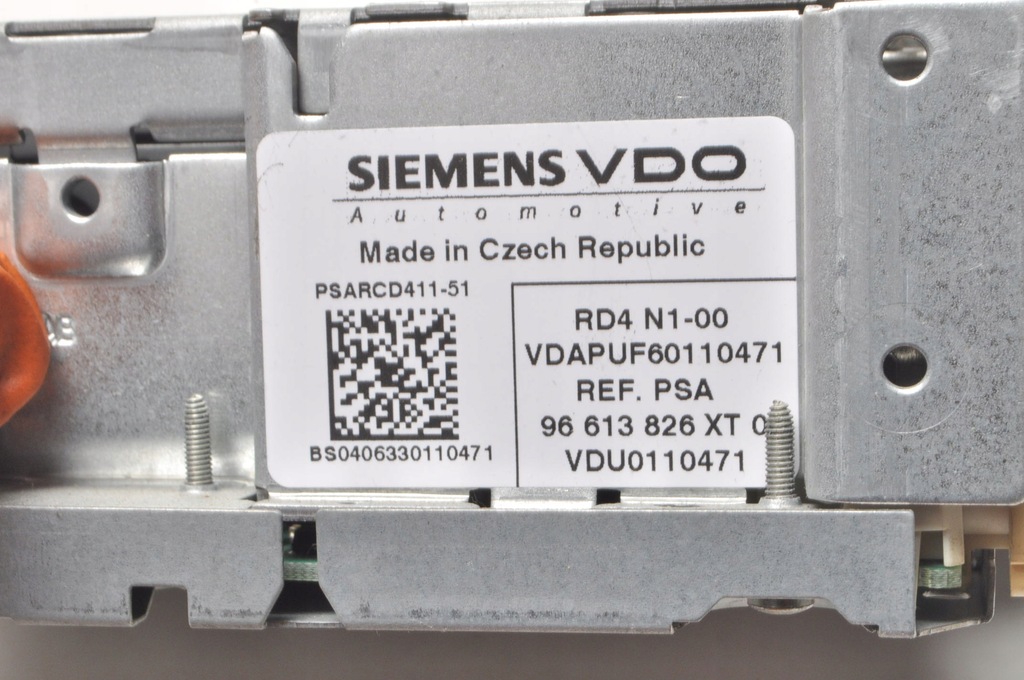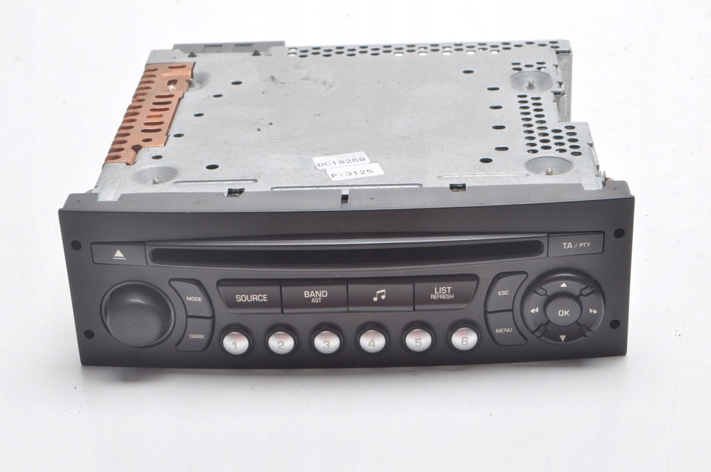 NAME RADIO P1 FACTORY NO. 96613826XT BRAND PEUGEOT MODEL 207 ENGINE 1.4 8V 73HP BODY Hatchback 5 doors NUMBER OF DOORS SUB-MODE ENGINE CAPACITY 0.0 TRANSMISSION TYPE Manual FUEL TYPE Petrol ENGINE CODE YEAR OF PRODUCTION 200 6 YEARS OF PRODUCTION 2006/04 - 2013/10 COLOR CODE COLOR ID PARTS: ID: 325102