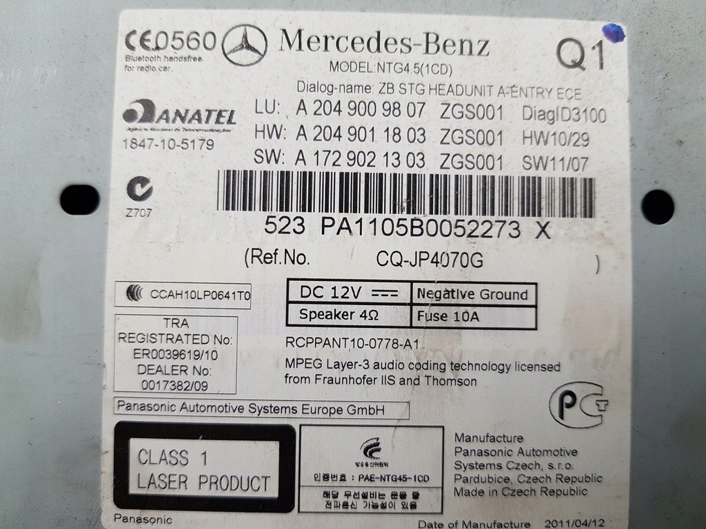 Radio Cd Navi Mercedes-Benz C A2049009807 A2049011803 A1729021303
