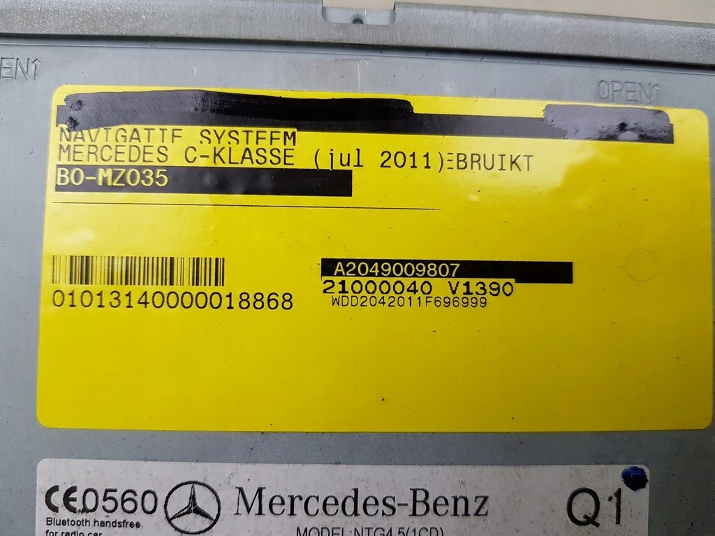 Additional functions: navigationBrand: Mercedes-BenzModel: Mercedes-Benz_Various models Mercedes-Benz_CPart name: navigation, navi GPSpart number shop: A1729021303, A2049011803, CQ-JP4070G, NTG4.5number from the manufacturer's catalog: A2049009807Part manufacturer: Mercedes-Benzcondition of goods: used Important information: The part number in the table above must be identical to your part number, otherwise the part will not work properly. Code protection: Yes - we do not have a code number