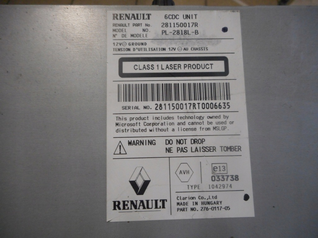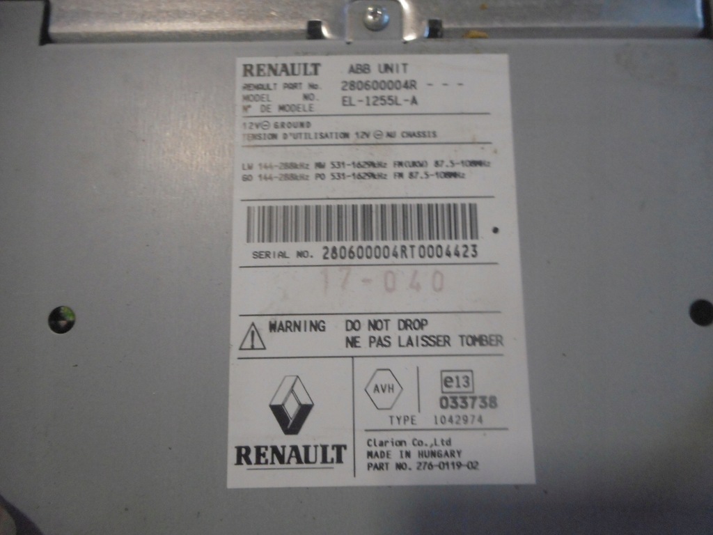| Parts manufacturer | Renault OE |