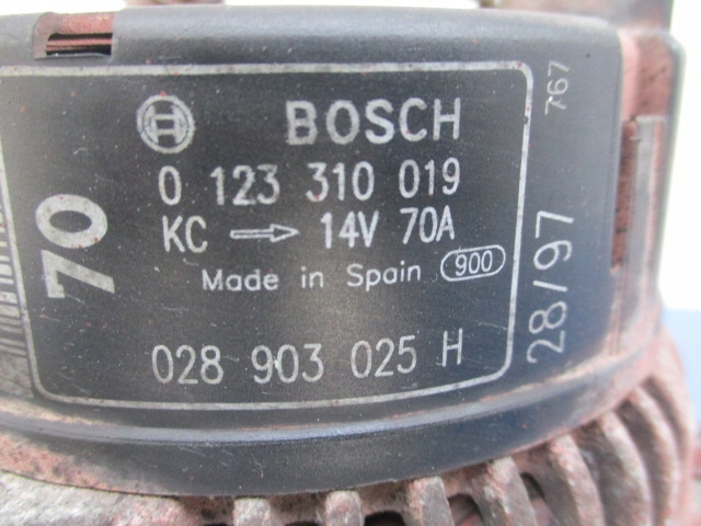 Description: with a voltage regulator, with a pulley for a multi-ribbed belt, BOSCH (1.0MPi, 8V, 37kW, 3dH / B, paint code LP3G) - quality A && SEAT AROSA 1.0 8V ALTERNATOR BOSCH 0123310019 70A