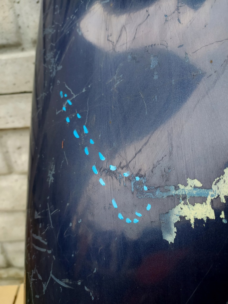 2 small, professionally tapped transport dents in the places marked with the marker. No developed corrosion is visible.
