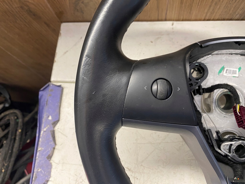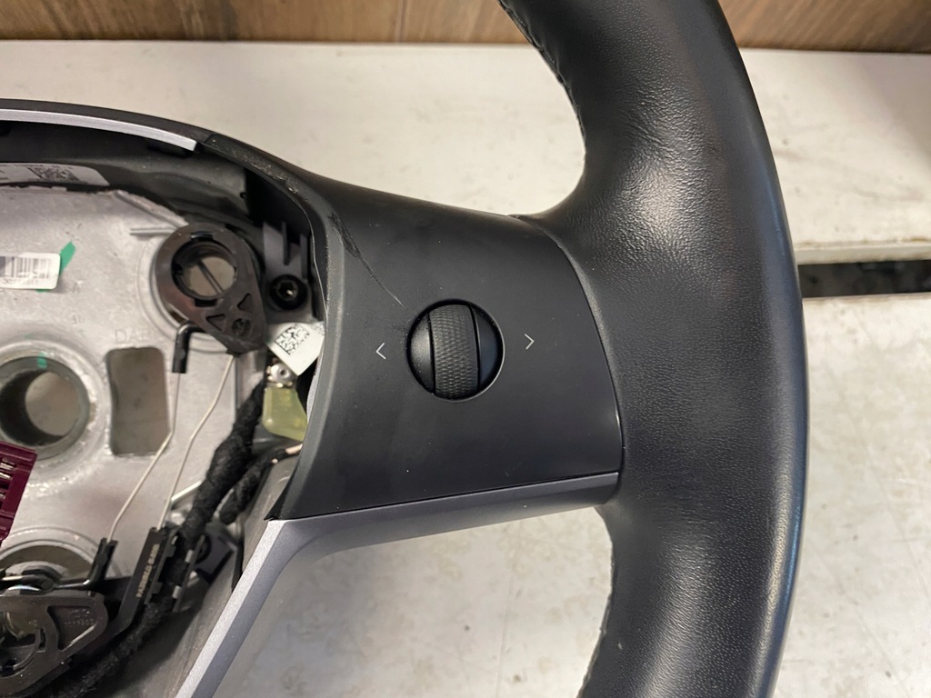 The steering wheel is in good condition, nice, not worn out.