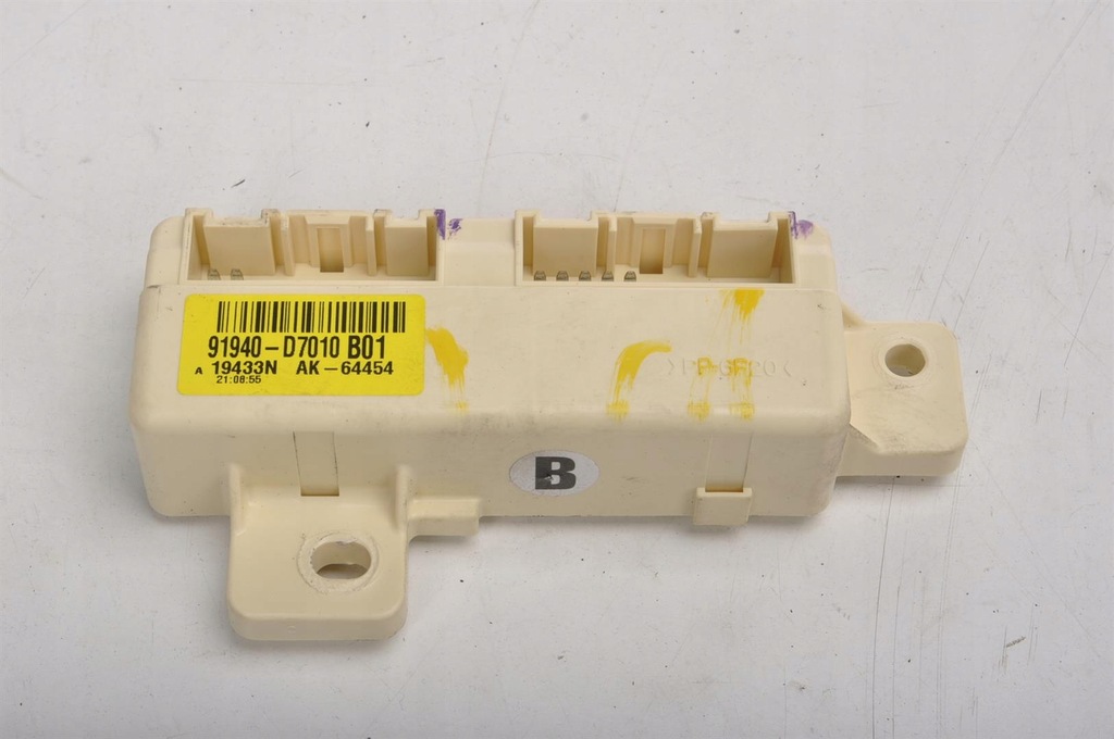 NAME MODULE CONTROLLER SERIAL NUMBER 91940-D7010 MAKE HYUNDAI MODEL TUCSON III SUBMODEL 1.6 GDI 130HP BODYWORK SUV ENGINE ENGINE CODE YEAR OF PRODUCTION 2020 COLOR CODE RWB PART ID: ID: 115581
