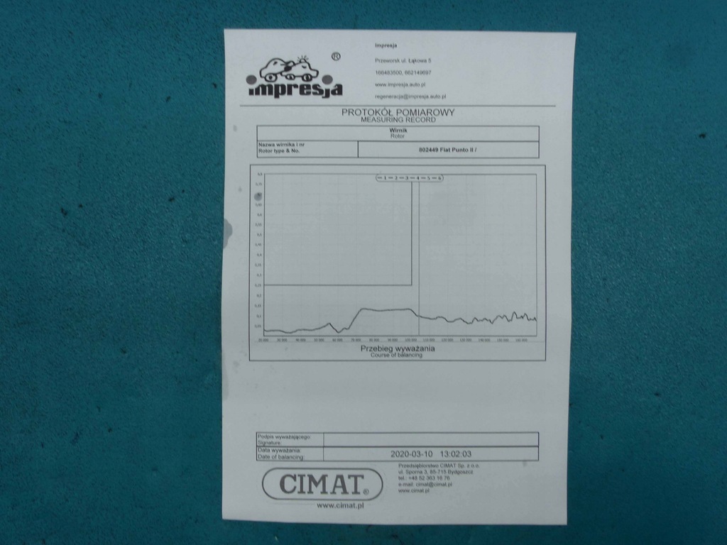 Brand Model: Fiat Punto II Vehicle VIN number: ZFA18800000281946 Year of manufacture. 2001 vehicle. Description of the vehicle: 1.9 JTD 80KM HB 5d gearbox manual air conditioning European version Additional information: Cleaned, balanced on the CMT 48 VSR CIMAT device, New: plate, wheel, roller, repair kit. 46556011