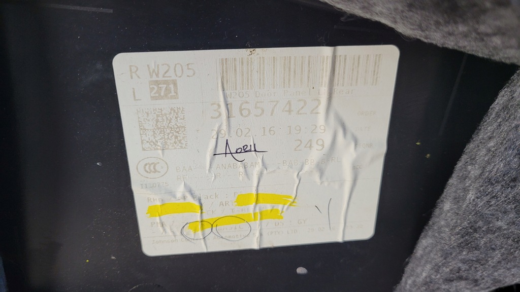 W205 C220 REAR LEFT DOOR PANEL A2057304101